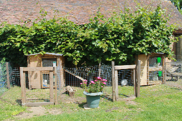 Ceux qui vivent dehors habitent dans des petits chalets avec un enclos d'herbe afin de se promener et se défouler et de creuser dans l'herbe .Le soir je les renferme dans leur chalet pour la nuit .